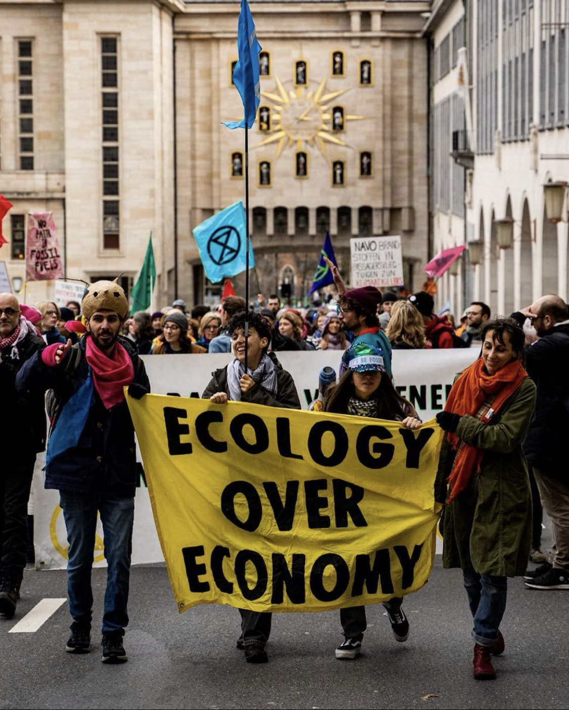 Extinction Rebellion protest, led by the slogan "Ecology over Economy".