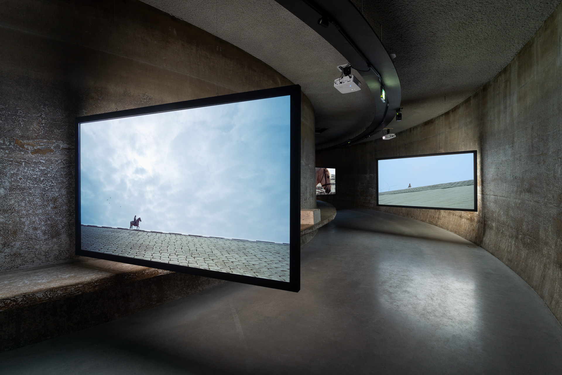 The exhibition SCENES FROM THE POLDER WESTERN is the outcome of a four-year long-term research project situated in the Netherlands, defined in relationship to the previously described interplay of land, sea, watery infrastructures, and the diverging aims, hopes and aspirations of the different stakeholders concerned. In 2020, Mata Dupont and Roux began interviewing climate scientists, sea level researchers, hydraulic engineers, artists and educators working in the field of water management, as well as people whose lives are intimately related to the sea and the land, among water millers and farmers. They spent time travelling around the country to discover the different landscapes of the Netherlands: polders, rewilded lands, farmland, artificial islands, storm surge barriers, and dykes. This early extensive fieldwork and interdisciplinary research provided the artists with new and more nuanced understandings of the Dutch landscape and its historical development.