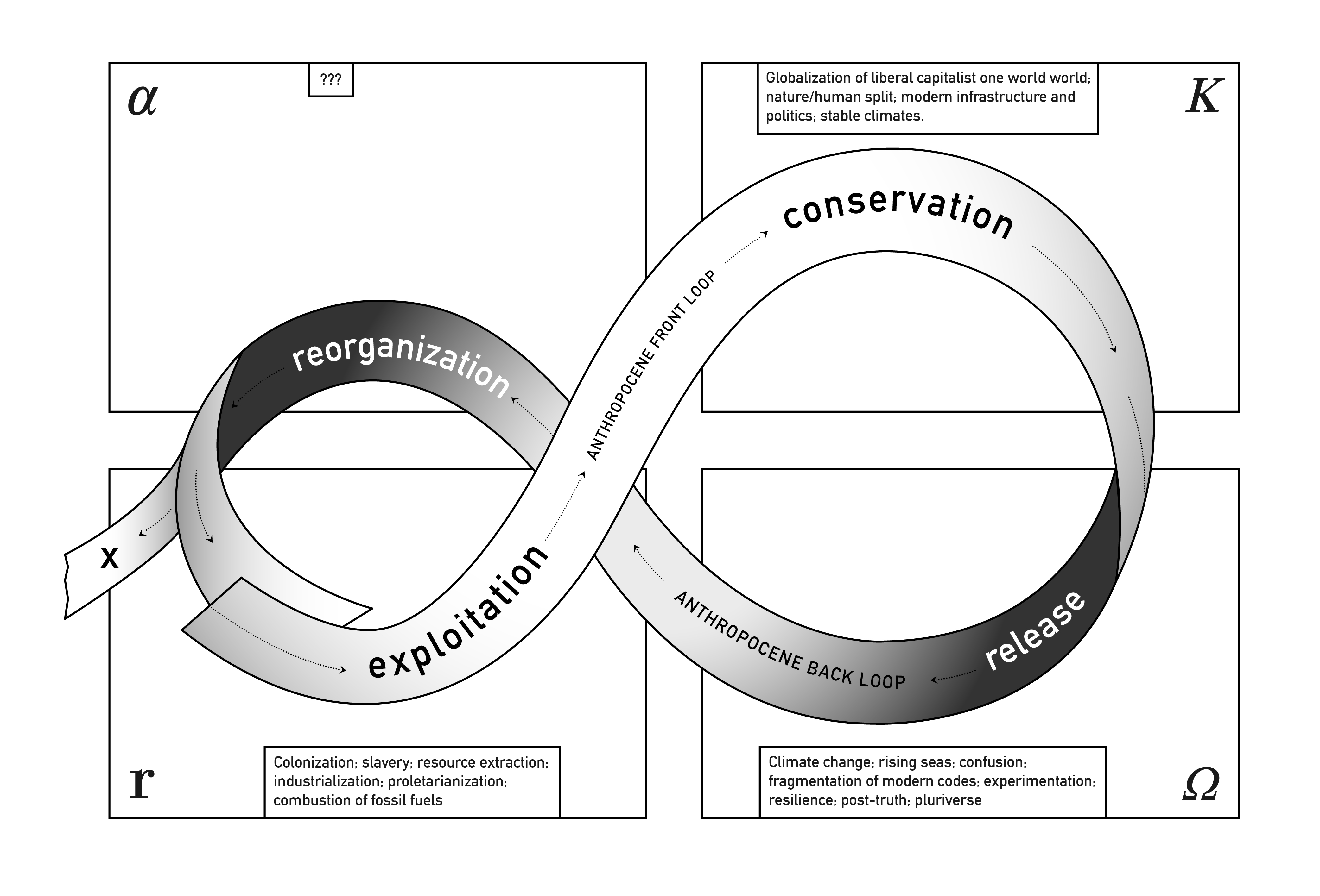 Educator and researcher Stephanie Wakefield argues that doomsday-driven fictions and enterprises rarely offer concrete approaches to overcome the current climate regime. Upon closer examination, they only seem to rush headlong toward supposed solutions. To work out the complexities of the ecological crisis, Wakefield claims that we ought to acknowledge that we are not only living in the Anthropocene, but also—and more specifically—in its "back loop": a time of release, fragmentation, and great potential for reorientation.
