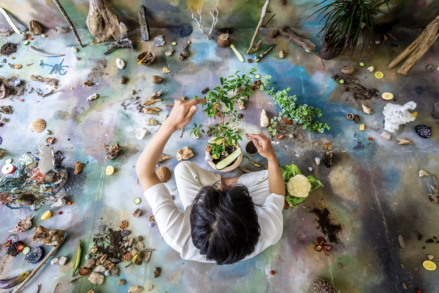 Het werk van Junghun Kim roept op tot een manier van in de wereld staan die zich toelegt op het opmerken en erkennen van onderlinge afhankelijkheden om daar vervolgens op een verantwoorde manier naar te handelen. Om een bredere blik op de wereld te bereiken waarin we onze eigen ervaringen situeren binnen grotere netwerken van relaties, ruimtes en tijden.Zijn artistieke praktijk sluit aan bij de oproep van Alexis Shotwell om praktijken te cultiveren die onderlinge afhankelijkheid erkennen en die een ethische relatie ondersteunen met de complexe ecologieën waarin we betrokken zijn en waardoor we gevormd worden.Juist deze combinatie van aandacht en altruïsme maakt Kim’s werk tot een oproep om onze gedeelde verantwoordelijkheid als niet-exclusieve bewoners van een “multi-scalar” planeet.Terwijl we zijn werk ervaren, blijft hij ademen en voegt hij zijn adem toe aan de miljoenen jaren adem en tijd die we delen met allerlei aardse bewoners die ons zijn voorgegaan en die ons zullen overleven. Al die tijd probeert hij de scheidingen die ons van elkaar vervreemden te helen, want deze aardse wonden zouden nog steeds maar één hechting verwijderd kunnen zijn van heling.