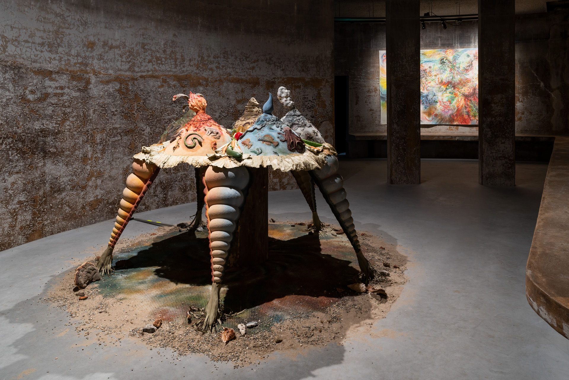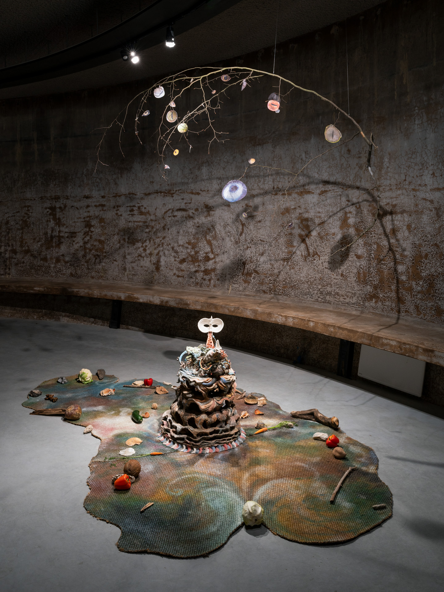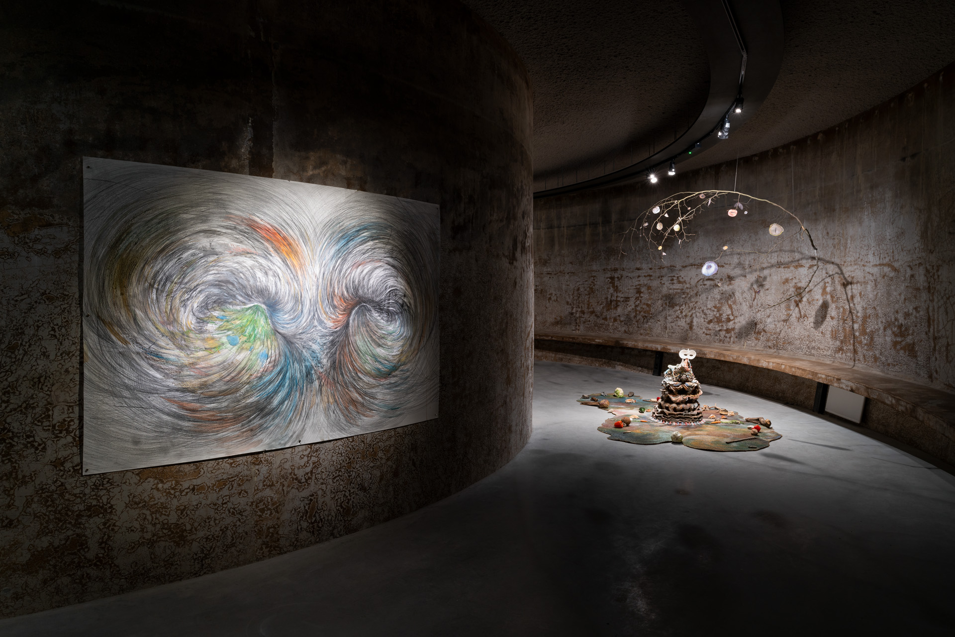 Het werk van Junghun Kim richt zich op de rampzalige impact van de mens op ecosystemen en relaties tussen de verscheidene levensvormen op Aarde. Als reactie hierop streeft Kim ernaar fysieke en spirituele drempels te overschrijden die naar meer belichaamde en regeneratieve manieren van leven op Aarde leiden. De tentoonstelling BREATHE A MENDING SONG INTO THESE EARTHLY WOUNDS komt voort uit onderzoek naar evolutionaire biologie—onder meer naar moleculair DNA, vergelijkende embryologie, fossielen en anatomisch bewijs—kosmologieën en verscheidene technologieën van extractie, om zo veerkrachtige verhalen naar voren te brengen over de kritieke toestand van planetaire ecosystemen. Het werk van Junghun Kim omvat keramiek, schilderkunst, beeldhouwkunst, installatie en meditatie en is een uitnodiging om onze zintuigen op fantasierijke, meditatieve en spirituele manieren aan te scherpen. De tentoonstelling is als zodanig een voorstel om onszelf als mensen opnieuw te positioneren op een planeet die gebaseerd is op relaties en veranderlijk van aard is, waarin alles dat wij maken en doen verweven is in grotere systemen van wederkerigheid en verantwoordelijkheid.