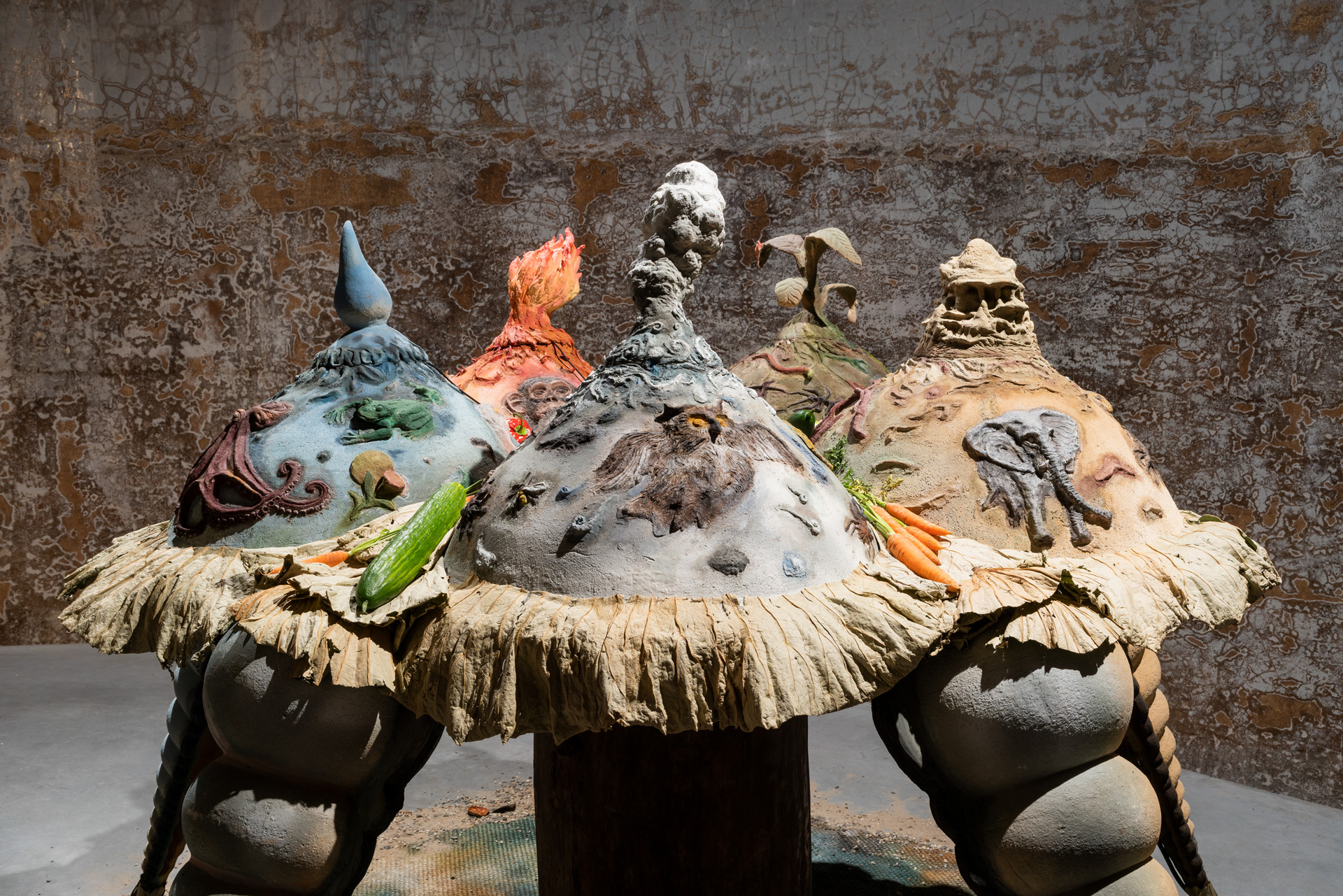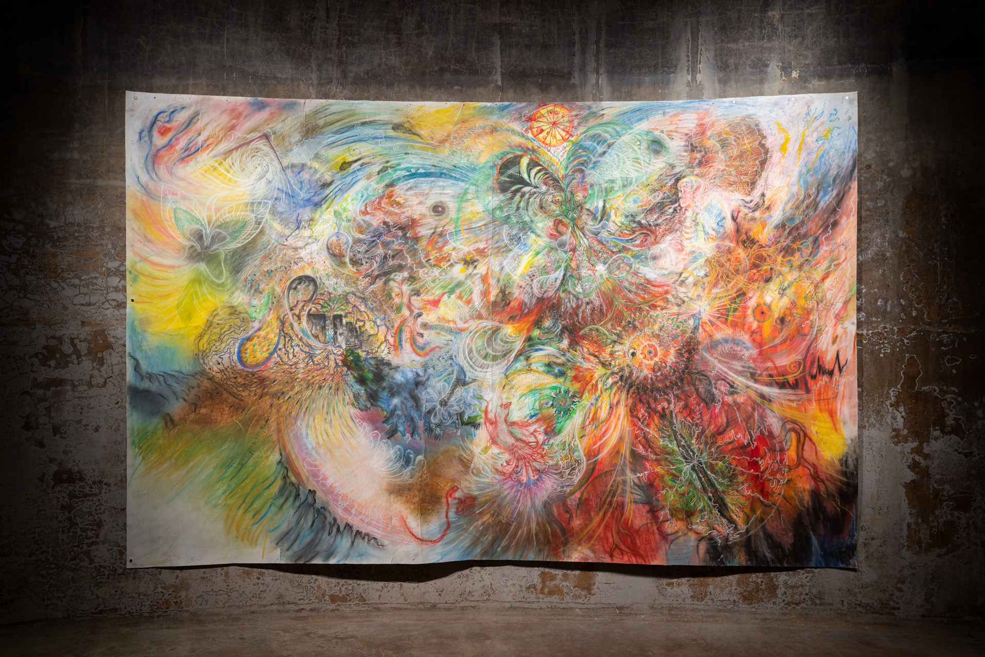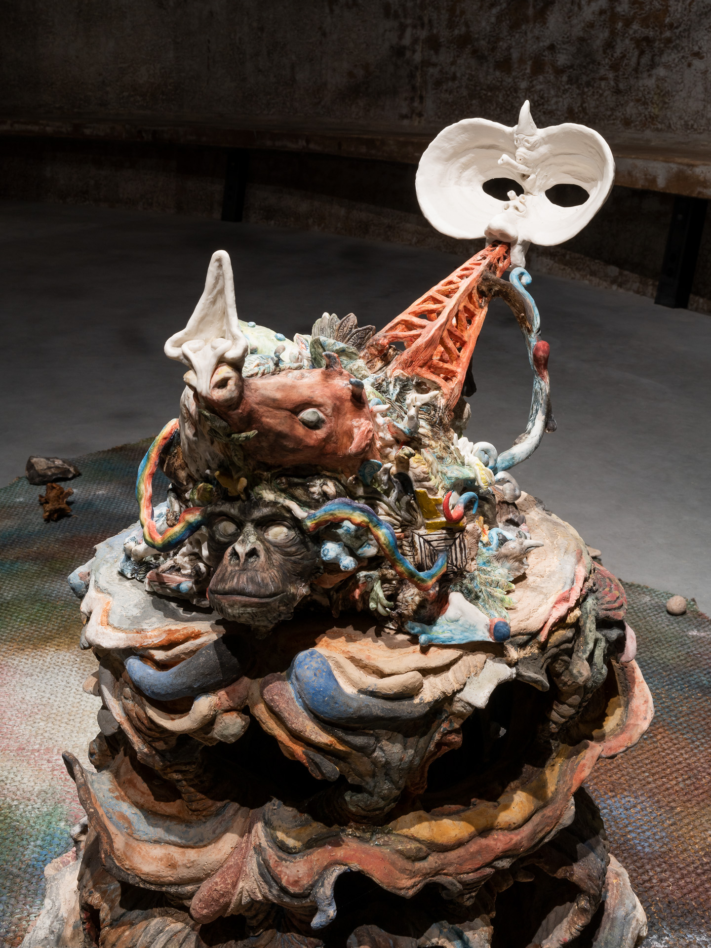 Het werk van Junghun Kim richt zich op de rampzalige impact van de mens op ecosystemen en relaties tussen de verscheidene levensvormen op Aarde. Als reactie hierop streeft Kim ernaar fysieke en spirituele drempels te overschrijden die naar meer belichaamde en regeneratieve manieren van leven op Aarde leiden. De tentoonstelling BREATHE A MENDING SONG INTO THESE EARTHLY WOUNDS komt voort uit onderzoek naar evolutionaire biologie—onder meer naar moleculair DNA, vergelijkende embryologie, fossielen en anatomisch bewijs—kosmologieën en verscheidene technologieën van extractie, om zo veerkrachtige verhalen naar voren te brengen over de kritieke toestand van planetaire ecosystemen. Het werk van Junghun Kim omvat keramiek, schilderkunst, beeldhouwkunst, installatie en meditatie en is een uitnodiging om onze zintuigen op fantasierijke, meditatieve en spirituele manieren aan te scherpen. De tentoonstelling is als zodanig een voorstel om onszelf als mensen opnieuw te positioneren op een planeet die gebaseerd is op relaties en veranderlijk van aard is, waarin alles dat wij maken en doen verweven is in grotere systemen van wederkerigheid en verantwoordelijkheid.