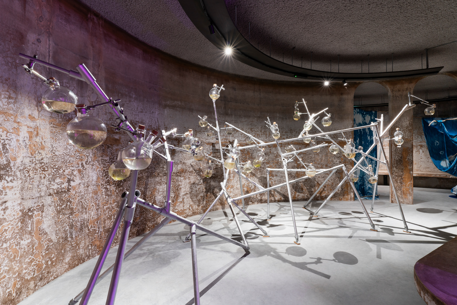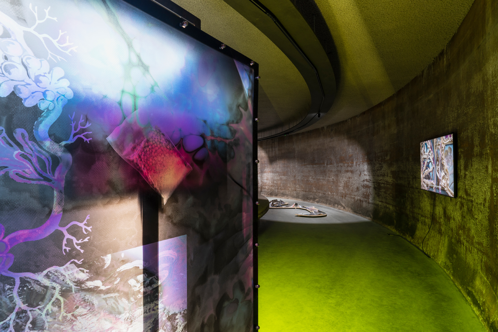 What we were and what we will become are concurrently returned and projected to and from us in an interdependent ebb and flow, in a simultaneous acknowledgement that a rich alterity of water bodies flows through us in an ongoing cycle. The first act of Underland merges the circular spaces of RADIUS, once a body of water itself, in artistic proposals for ways of existentially flowing in a jeopardised landscape of abundance and scarcity, of financial speculation and risk, of emergence and devastation. Reckoning ourselves as bodies of water underlines a rich set of assemblages that demand compromised responses at the present time. In what ways can we establish sustainable blueprints for equitable water cycles? How can thinking about ourselves as watery bodies in connection to other species entangle us in productive ways? How can we move away from anthropocentric water sovereignty by embracing an inter-species consciousness, and what systems of distribution and relating may emerge from it?