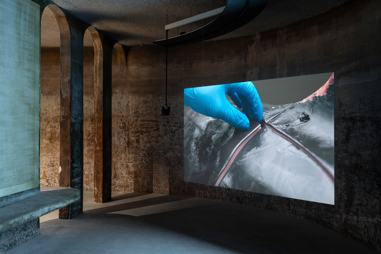 In THE WORLD IS A VERB, the bandwidth of this human-centered systems thinking around energy is stretched and new protagonists—usually as the effect of climate change or environmental pollution caused by human actions—appear on the scene. From electricity obtained from melting glacier water and heavy metals recovered from the body of a beached whale, Mascini’s presentation offers new perspectives on energetic processes in a world subject to constant metamorphosis: the world is a verb!