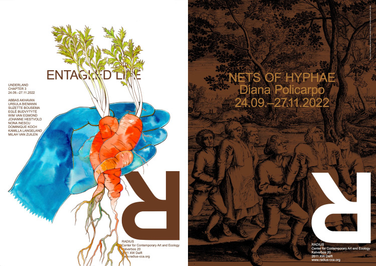 RADIUS presenteert gelijktijdig van 24 september tot en met 27 november een tweetal tentoonstellingen. VERSTRENGELD LEVEN is de derde tentoonstelling van het Benedenwereld-jaarprogramma en onderzoekt de verstrengeling tussen bestaans- en levensvormen die voorkomen in bosecosystemen aan de hand van het werk van negen kunstenaars. De tentoonstelling, die zich verplaatst van het world wide web naar het wood wide web, is er op gericht om een vergroot begrip van symbiose, mutualisme, wederkerigheid en onderlinge afhankelijkheid te bepleiten. In de solotentoonstelling NETS OF HYPHAE ontrafelt kunstenaar Diana Policarpo de verwikkelde draden van de moederkorenschimmel en de geschiedenis, om zo de verhoudingen tussen genderpolitiek, economische structuren, gezondheidsstrijd en onderlinge relaties tussen soorten bloot te leggen.