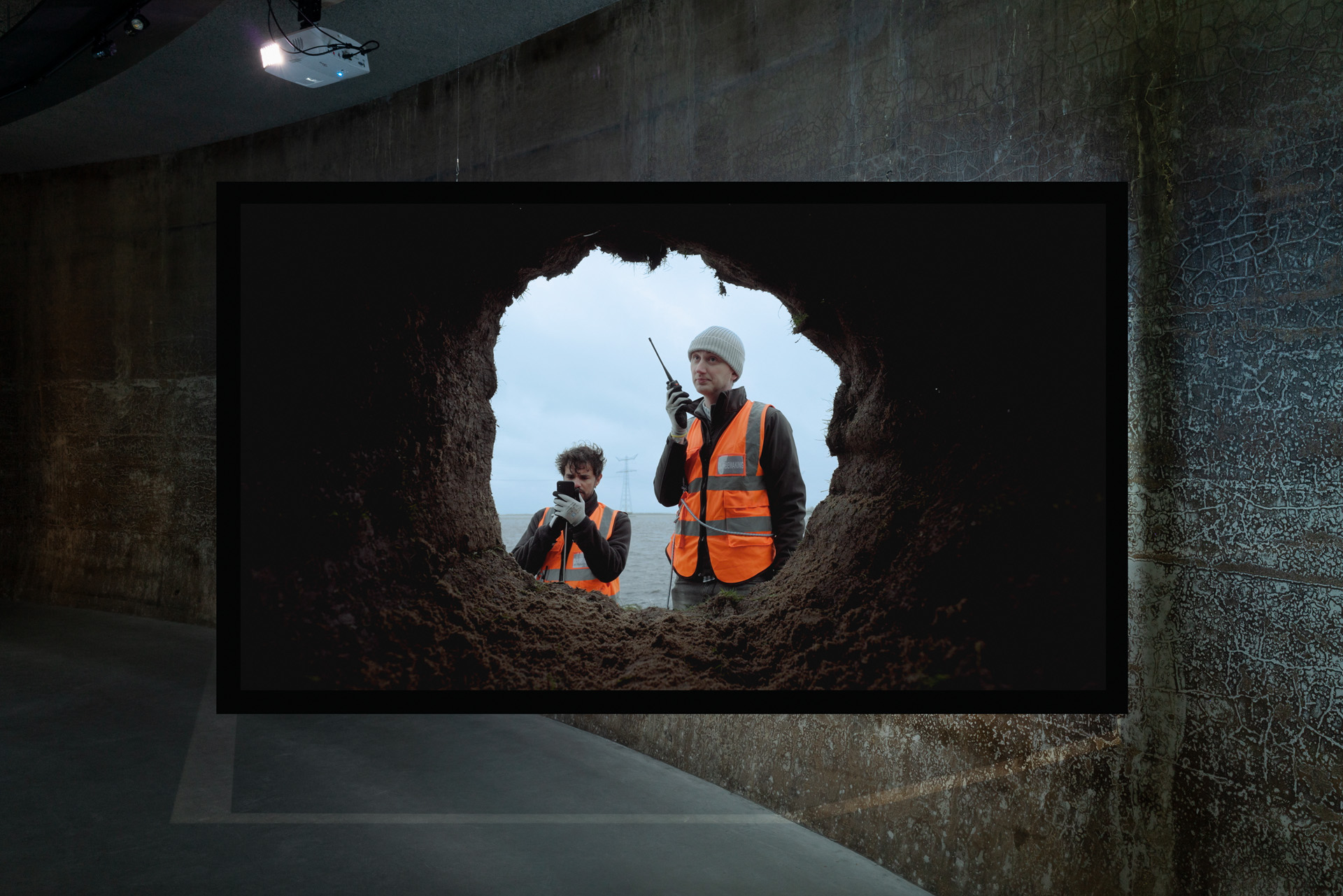 Het is precies op dit spanningsveld tussen de zee en het Nederlandse polderlandschap dat de tentoonstelling SCENES FROM THE POLDER WESTERN van kunstenaars Pilar Mata Dupont en Erika Roux geplaatst kan worden. Door middel van een reeks vignetten, geënt op de filmische stijlfiguren van het westerngenre, presenteren Mata Dupont en Roux een reeks morele verhalen over een ecologisch kwetsbaar land dat te maken heeft met complexe problemen, zoals klimaatverandering, zeespiegelstijging, overstromingen en droogte, afbrokkelende infrastructuren, een stikstofcrisis, en de daaruit voortvloeiende maatschappelijke polarisatie en politiek (wan)beheer. Aan de hand van een tragikomische vertelling legt de filminstallatie LOWLAND MELODIES, A POLDER WESTERN bij RADIUS verbanden tussen verschillende scènes en personages—menselijk en meer-dan-menselijk—die zich elk op hun eigen manier proberen te verhouden tot de veranderingen in territorium, leefomgeving en gemeenschap in het Nederlandse cultureel en politiek geconstrueerde landschap.